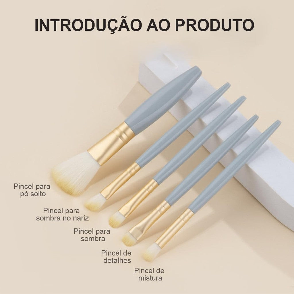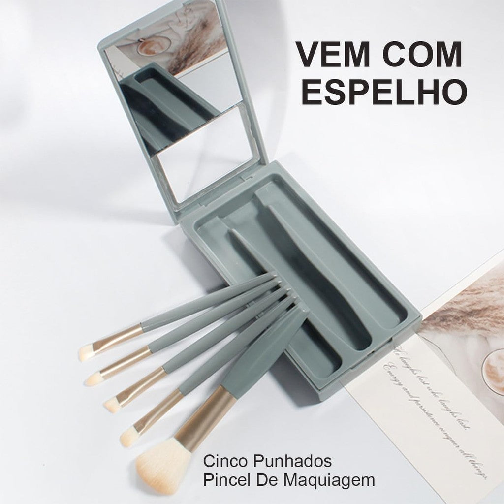 KIT 5 PINCÉIS DE MAQUIAGEM MAKEONE - COM ESPELHO — Acabamento Impecável, Resultado Profissional